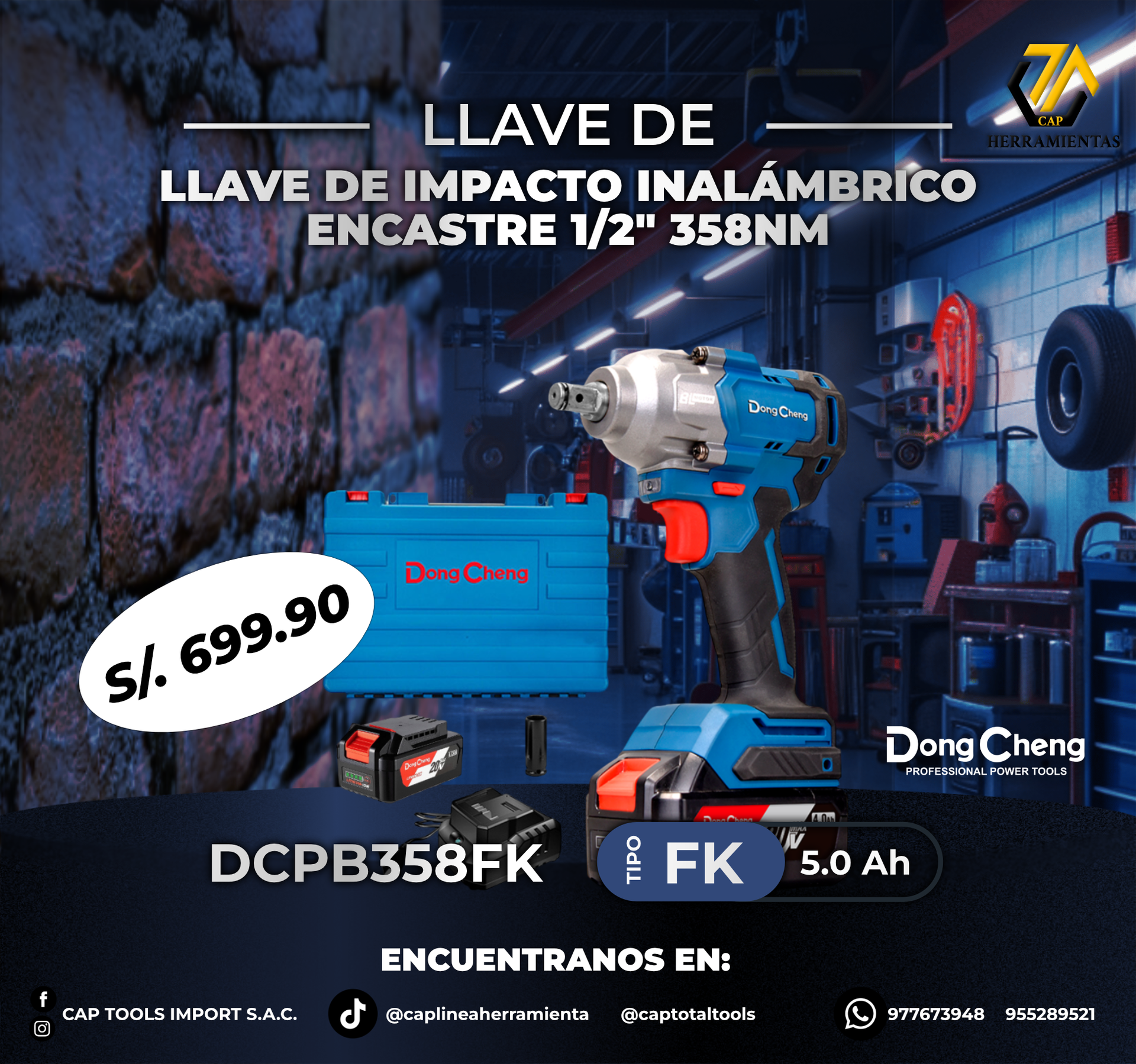 N.M + ATORNILLADOR IMPACTO 285N.M 20V + ACC 2X2.0AH MALETIN INDUSTRIAL