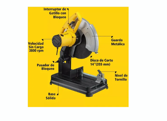 | Diámetro del Disco: | Amoladora: 4 1/2" (115 mm) Tronzadora: 14" (355mm) | Velocidad de Rotación: | Amoladora: 12000 rpm Tronzadora: 4200 rpm |